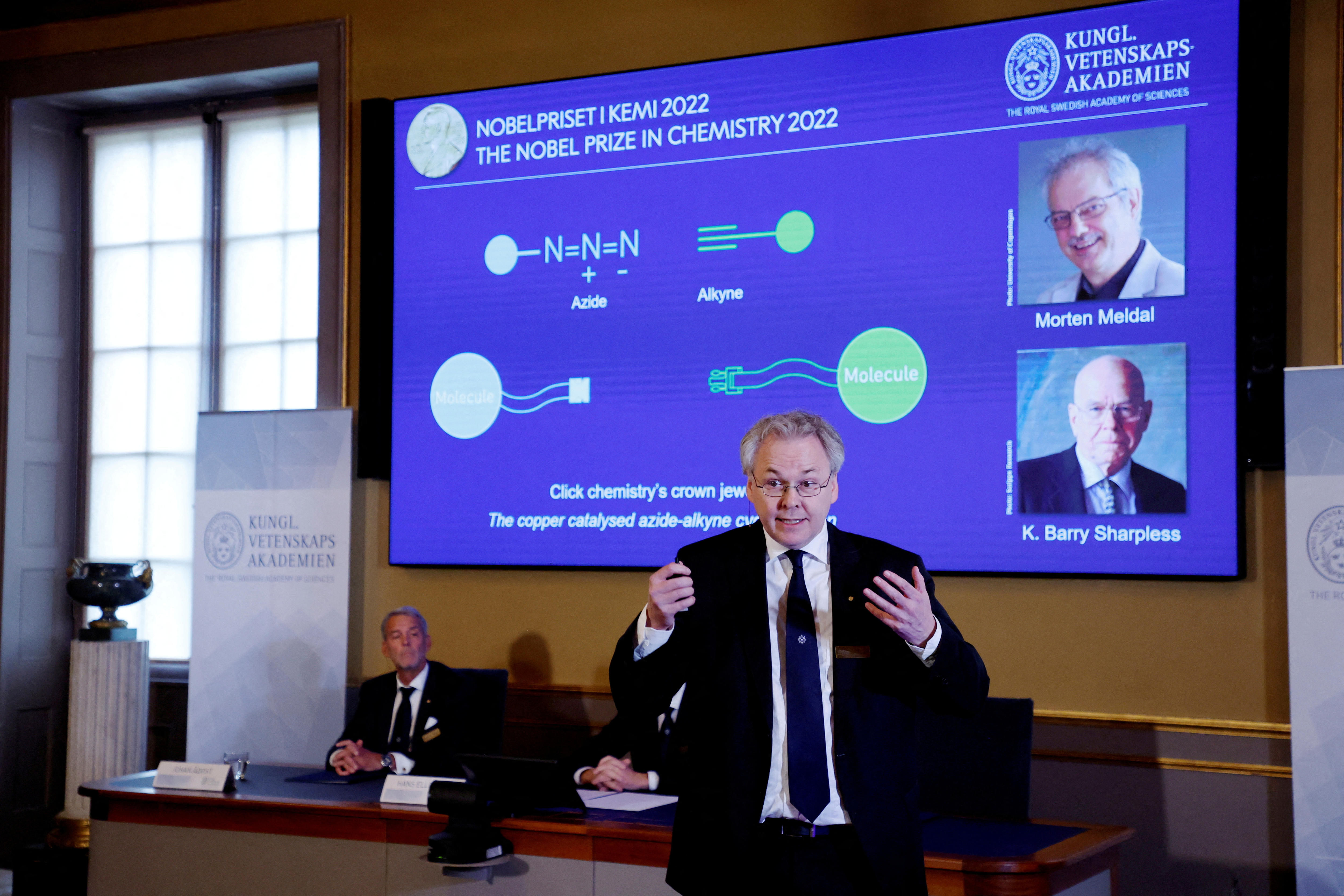 The Nobel Prize in Chemistry has been awarded to Carolyn Bertozzi Morten Meldal and Barry Sharpless for the development of click chemistry and bioorthogonal chemistry.
